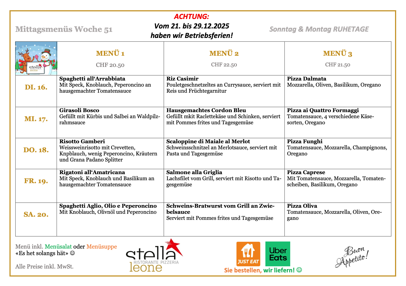 (Bei Anlässen und Banketten öffnen wir gerne auf Anfrage)